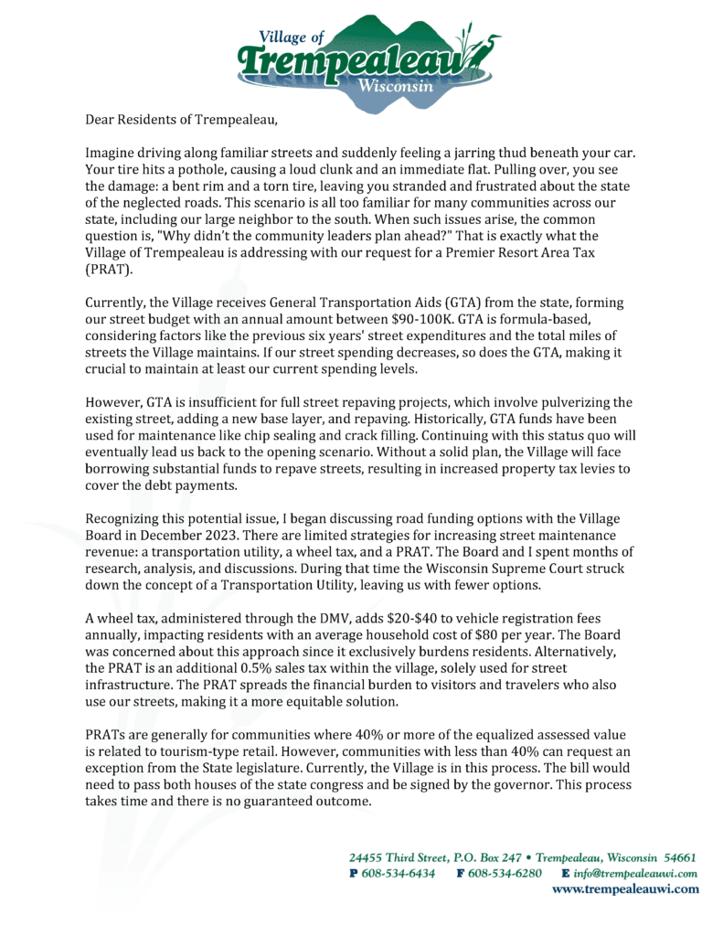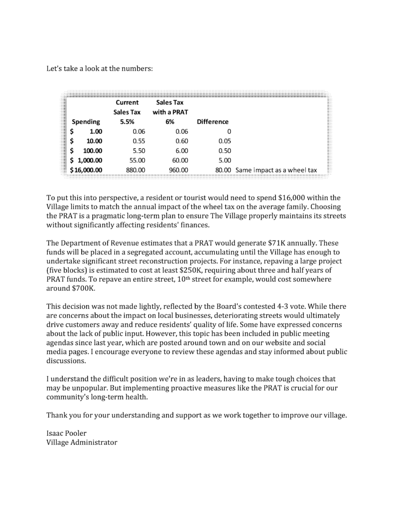 A letter from the Administrator regarding the recent decision to pursue a Premier Resort Area Tax